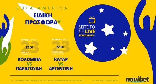 Συναρπαστικά παιχνίδια κι απόψε στο πρόγραμμα του Copa America, το οποίο τα μέλη της Novibet μπορούν να παρακολουθήσουν σε Live Streaming*