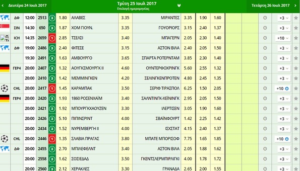 «Πλούσιο» το σημερινό κουπόνι πάμε στοίχημα (25/07), όπου το ενδιαφέρον επικεντρώνεται στις αναμετρήσεις για τον τρίτο προκριματικό γύρο του Τσάμπιονς Λιγκ. Ρίχνεται στη «μάχη» ο Ολυμπιακός, που καλείται να πάρει αποτέλεσμα στο Βελιγράδι κόντρα στην πιο έτοιμη Παρτιζάν, ενώ προβάδισμα θέλει να αποκτήσει η ΑΕΚ εναντίον της ΤΣΣΚΑ Μόσχας.