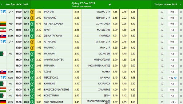 Με αρκετές επιλογές το πρόγραμμα στο σημερινό κουπόνι πάμε στοίχημα (17/10), όπου υπάρχει σέντρα στην τρίτη αγωνιστική των ομίλων του Τσάμπιονς Λιγκ.