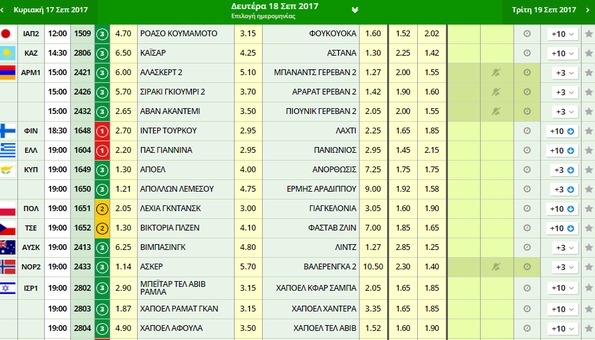 Με αρκετές επιλογές το πρόγραμμα στο σημερινό κουπόνι πάμε στοίχημα (18/09), όπου υπάρχει δράση σε πολλά μεγάλα πρωταθλήματος της Ευρώπης. Κλείνει η αγωνιστική στη Σούπερλιγκ, παιχνίδια έχουμε σε Ισπανία και Πορτογαλία.