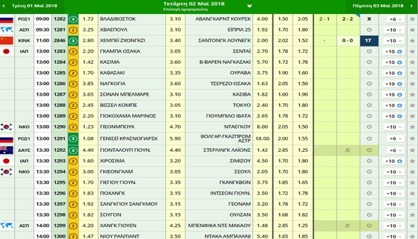Περιορισμένη η δράση στο σημερινό κουπόνι πάμε στοίχημα (02/05), όπου οι επιλογές είναι μετρημένες. Συνέχεια στις ρεβάνς των ημιτελικών του Τσάμπιονς Λιγκ με την αναμέτρηση Ρόμα – Λίβερπουλ, δράση έχουμε επίσης σε Σουηδία, Σκωτία και Πολωνία.