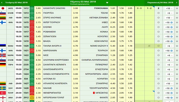 Περιορισμένη η δράση στο σημερινό κουπόνι πάμε στοίχημα (03/05), όπου οι επιλογές είναι μετρημένες. Ξεχωρίζουν οι ρεβάνς για τα ημιτελικά του Γιουρόπα Λιγκ, δράση έχουμε επίσης σε Σουηδία, Τουρκία και Φινλανδία.