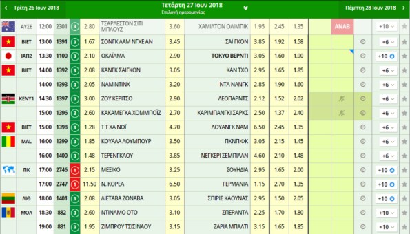 Τέσσερα ματς περιλαμβάνει το σημερινό πρόγραμμα του Μουντιάλ, με ακόμη δύο ομίλους να ολοκληρώνονται. Έχει προβάδισμα το Μεξικό στον έκτο όμιλο, ενώ στον πέμπτο όμιλο (της Βραζιλίας) τα πράγματα είναι λιγάκι πιο περίπλοκα. Το κουπόνι πάμε στοίχημα (27/06) περιλαμβάνει επίσης αναμετρήσεις από το πρωτάθλημα της Λιθουανίας.
