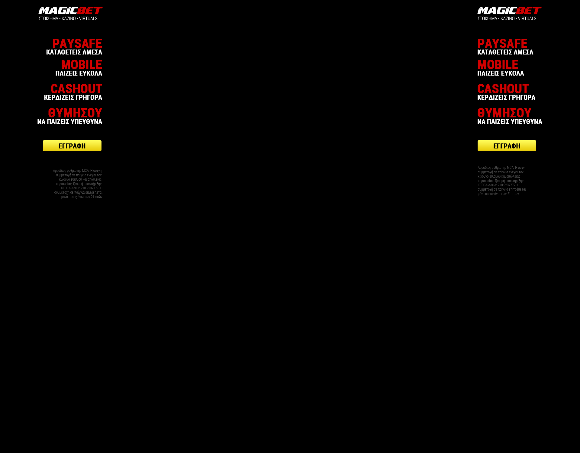 Η Magicbet ήρθε για να προσφέρει κάτι διαφορετικό στην αγορά του online στοιχήματος. Ευχάριστο και οικείο το περιβάλλον της ιστοσελίδας, εξαιρετική η πλατφόρμα Live Betting, πλούσια η γκάμα στοιχημάτων. Μεγάλη ποικιλία παιχνιδιών συναντάμε και στο κομμάτι του Live Casino, όπου υπάρχει η δυνατότητα και για Live Casino.