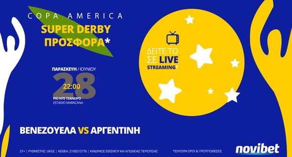 Συναρπαστικά παιχνίδια κι απόψε στο πρόγραμμα του Copa America, το οποίο τα μέλη της Novibet μπορούν να παρακολουθήσουν σε Live Streaming*.